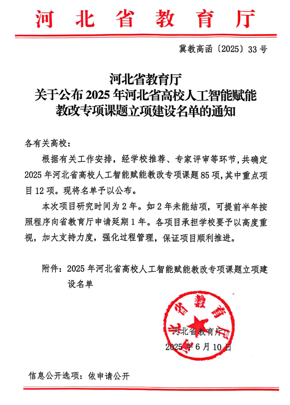 2025年河北省高校人工智能赋能教改专项课题立项建设名单
