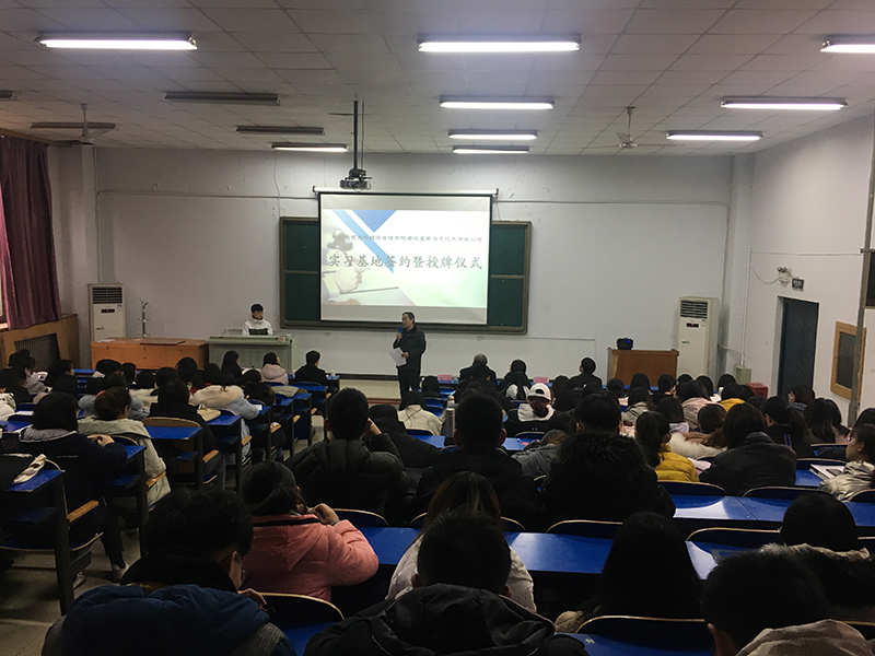 1224日下午,会计系在西院东阶梯教室举办与微宝云信息技术有限公司建立实习基地的签约暨授牌仪式。微宝云信息技术有限公司李俊强总经理、Beat365中文官方网站副院长赵宇、实践教学部部长张风海、会计系党总支书记蔡杨、会计系主任王慧霞、微宝云信息技术有限公司项目代表及196名学生参加本次活动。