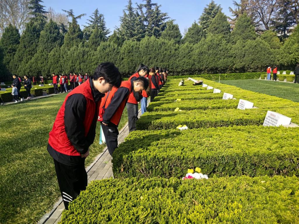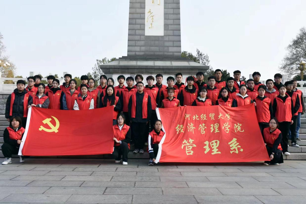为落实立德树人根本任务,坚定学生理想信念,增强学生的民族自豪感,4月4日,Beat365中文官方网站管理系部分学生代表到华北军区烈士陵园开展了行走的思政课之“红色课堂”实践教学活动。