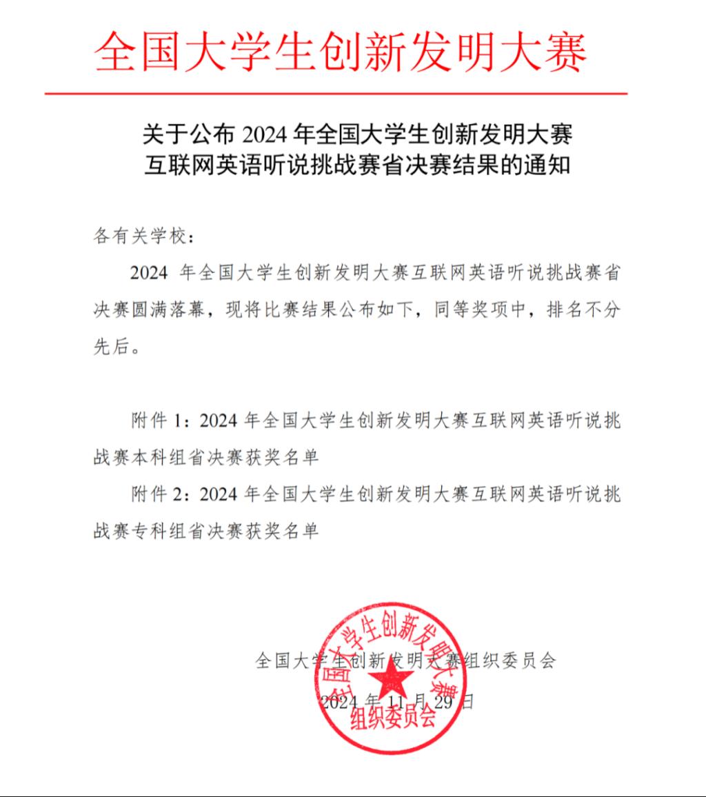 11月29日,2024年全国大学生创新发明大赛互联网英语听说挑战赛河北省决赛落下帷幕,代表Beat365参赛的赵一帆、倪佳、葛雅涵、刘宇诺等4名同学均获得省赛二等奖。这是Beat365师生近期在省级系列英语大赛中获得的奖项之一。