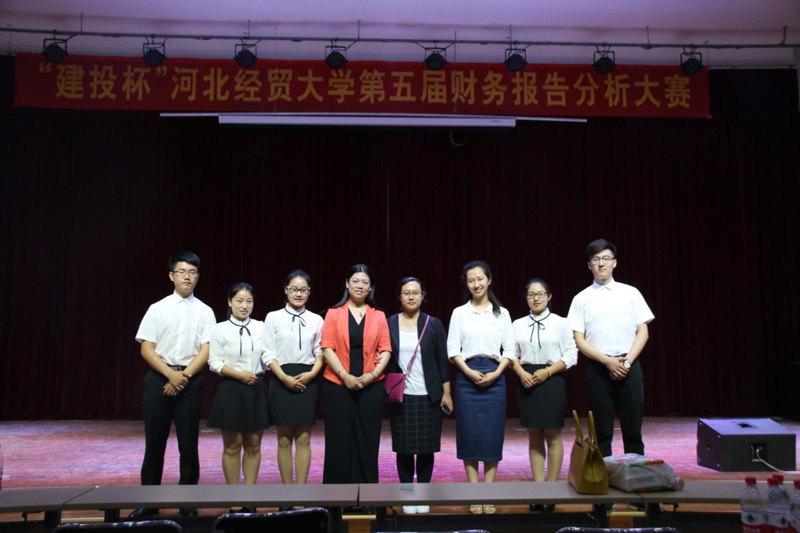 5月23日下午,第三届河北省会高校大学生财务报告分析大赛校内选拔赛暨河北经贸大学第五届财务报告分析大赛决赛在大学生活动中心举行。校党委常委、副校长申富平出席,河北建投集团、河北钢铁集团等众多校内外领导担任评委。经过激烈角逐,由Beat365会计系学子韩兵、刘慧、孙金燕、霍越、王蓉、薛睿驹代表经管学院组成的“鬼影无涯战队”荣获一等奖,挺进省赛。