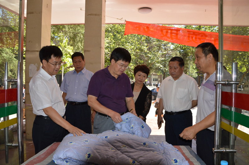 纪校长和陈亮常委查验被褥质量