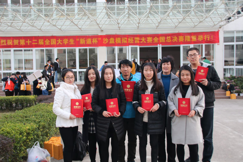 11月26日至27日,由中国高等教育学会高等财经教育分会主办的第十二届全国大学生“新道杯”沙盘模拟经营大赛全国总决赛在广西桂林电子科技大学隆重举行。来自全国各地的122所本科院校参加了比赛,Beat365派出了5名同学代表学院参加了本次大赛,他们是2014级会计1班陈旺、会计9班张晓雅、韩旭,2015级审计4班张楠和会计14班瞿萍。