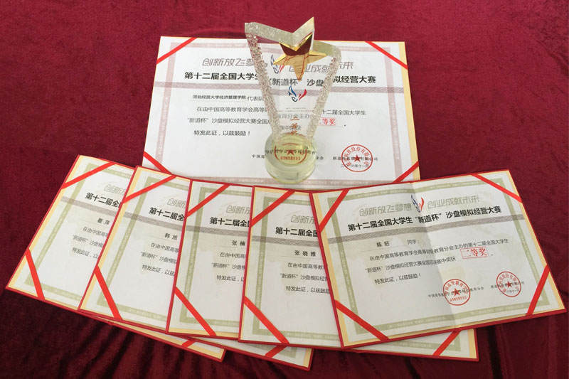 本次大赛的比赛软件使用了《新商战》模拟竞赛平台,历时5个月,进行了大赛前的磨合与竞技,同学们牺牲了大量休息时间,先后经过了校内选拔赛、河北省选拔赛,在众多的院校比拼中脱颖而出,最后与其他四所院校代表河北省参加了国赛,经过紧张、激烈的角逐,同学们表现出了顽强拼搏、永不放弃的精神,展现出了优秀的团队合作能力以及坚忍不拔的意志,体现了Beat365良好的精神风貌,在高手如林的竞技环境下,沉着冷静,最终荣获全国二等奖,为Beat365争得了荣誉。2014级会计9班的张晓雅同学在2016“职场明日之星”挑战赛中取得优秀个人奖,并获得用友公司提供职场一对一就业指导推荐。