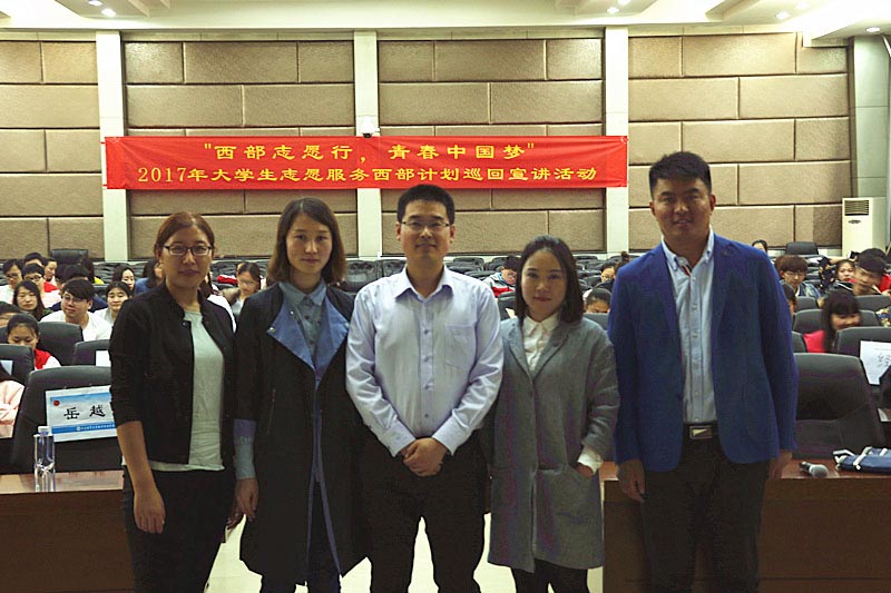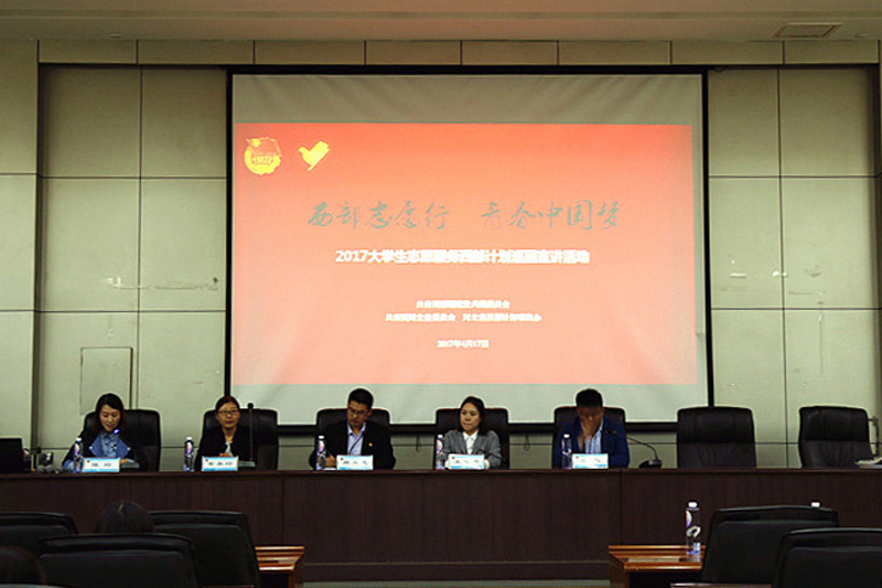 4月17日下午,“西部志愿行青春中国梦”2017年大学生志愿服务西部计划巡回宣讲活动,在Beat365图书馆报告厅举行。宣讲会由共青团河北省委、河北省西部计划项目办和共青团新疆生产建设兵团委员会联合举办,新疆生产建设兵团团委办公室新媒体负责人、兵团青联副秘书长周玉龙、2014年西部计划志愿者岳越和2009年西部计划志愿者常美玲、河北团省委志愿服务工作部王慧杰等有关同志出席,学院200余名师生现场聆听,宣讲会由学院团委书记陈玲主持。