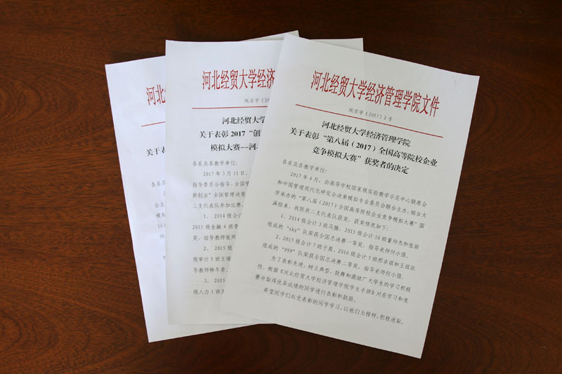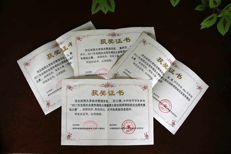 本次受表彰的团队均来自实践教学部ERP俱乐部,他们抓紧课余时间,认真设计,反复修改,最终凭借过硬的专业技术和优秀的协作能力取得了丰硕的成果。今年4月,在“第八届全国高等院校企业竞争模拟大赛”上,Beat365派出的两支代表队分别获得全国总决赛一等奖和二等奖;今年3月举办的“2017‘创新创业’全国管理决策模拟大赛——河北省赛”上,Beat365派出的三支代表队分别获得两个省赛一等奖,1个二等奖;在2016年12月“华北区第六届高等院校企业竞争模拟大赛”上,Beat365代表队获得大赛三等奖,学院在本次竞赛组织中表现突出,获优秀组织单位奖。