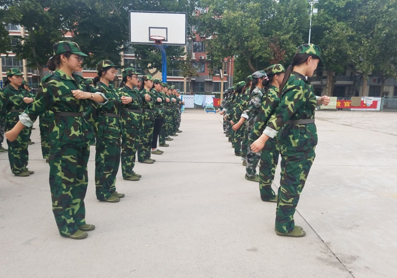 炎炎烈日下,长时间的军姿站立让他们明白了坚持的内涵,给了他们金石般的顽强意志;持续的稍息立正齐步走,让他们汗流不止,但湿透的衣服和落在地上的汗珠都是他们不放弃不屈服的见证。