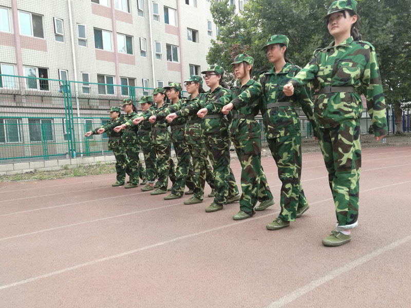 同学们脱掉了清爽的夏装,身着一袭军绿色的训练服步入操场,远远望去一片迷人的色彩,与绿杨和碧草融为一体。离开了父母无微不至的保护,独自参加严格的军训,信息系的莘莘学子选择了勇敢面对。