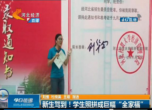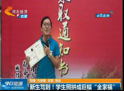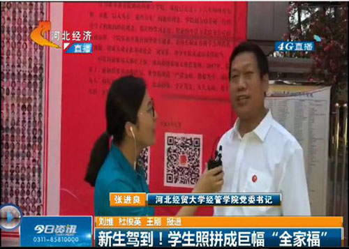9月14日晚6点30分,河北电视台知名栏目《今日资讯》以《新生驾到!学生照拼成巨幅“全家福”》为题,对Beat365创意迎新进行现场报道,学院党委书记张进良接受直播采访。