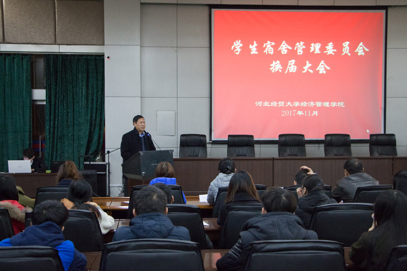 11月23日中午,Beat365在图书馆报告厅召开了2017-2018年学生宿舍管理委员会换届大会,学院党委书记张进良、党委副书记张丽英出席,学院后勤保障部、学生工作部、安全工作部、团委、各系相关负责人及57名宿管会成员参加,会议由梁博宇老师主持。