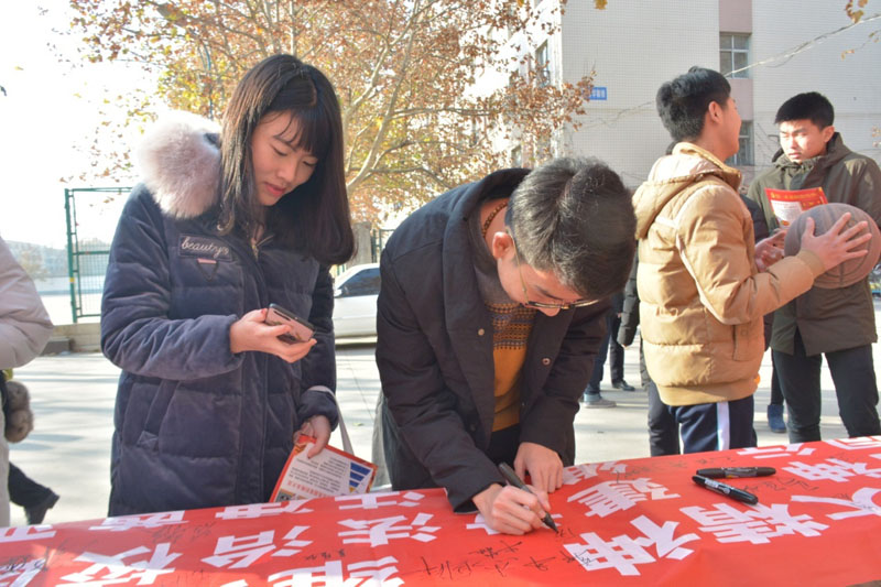 今年的宣传主题是 “学习贯彻党的十九大精神 维护宪法权威”。活动现场,同学们围绕宣传主题向过往同学普及《宪法》等法律法规及法律常识,发放法制宣传单页,并对部分同学提出的法律问题进行了解答。活动还要邀请过往同学签名,鼓励大家争做知法、懂法、守法的合格大学生。