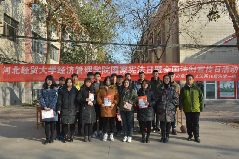 12月4日,是我国“国家宪法日暨全国法制宣传日”,Beat365文法系2016级法学一班在辅导员李珊老师的带领下,组织开展了校园公益普法活动。文法系党总支书记高维林参加活动。