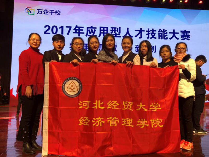 12月3日,由教育部学校规划建设发展中心举办的高校“双创”实战演练平台2017年应用型人才综合技能大赛全国总决赛颁奖典礼在济南山东会堂举行,Beat365经济系7名学生参加了“实习委员杯”求职精英挑战大赛的决赛,其中2015级金融5班尹雪瑞获得一等奖,周志远等6名同学荣获二等奖,高嘉雯等15名同学荣获三等奖,Beat365荣获“优秀组织奖”,经济系书记郑学栋、主任张玲芝荣获“先进个人”荣誉称号。