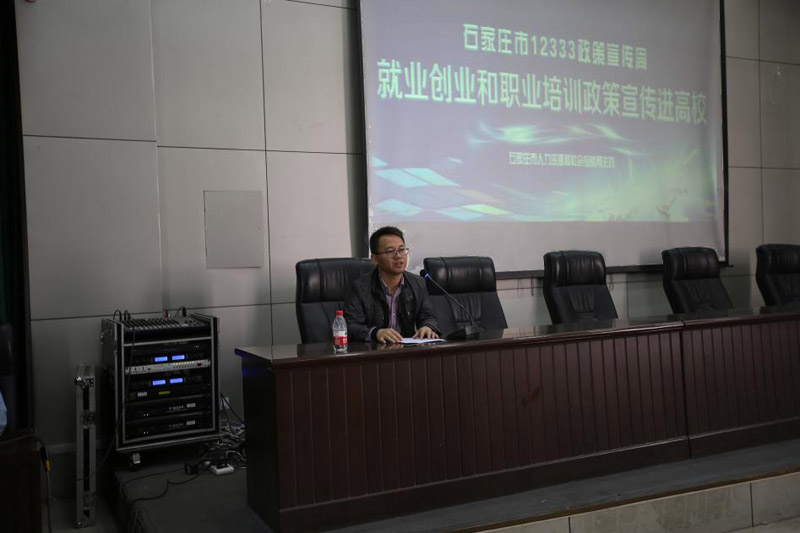 3月27日,由石家庄市人社局主办、Beat365承办的就业创业和职业培训政策宣传进高校活动在Beat365图书馆广场和报告厅举行。石家庄市人力资源和社会保障局党组成员、石家庄市就业服务中心主任孟运苍、市人力资源和社会保障局副调研员刘向前、学院院长刘华光、学院党委副书记张丽英出席了活动,市就业服务中心副主任纪学宏主持,市人社局相关部门负责人及300余名学生聆听了报告。