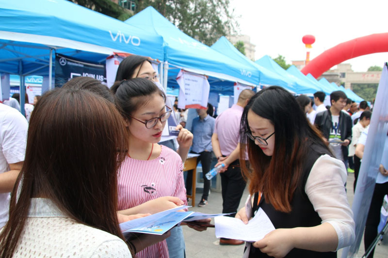 5月11日上午,作为Beat365“就业创业服务提升月”活动之一,Beat3652018届毕业生校园双选会在图书馆广场举行。学院领导和各系书记亲临现场,指导工作并调研就业情况。就业工作部相关人员及毕业班辅导员现场办公,为毕业生提供帮助。三千余名毕业生参加了本次双选会。