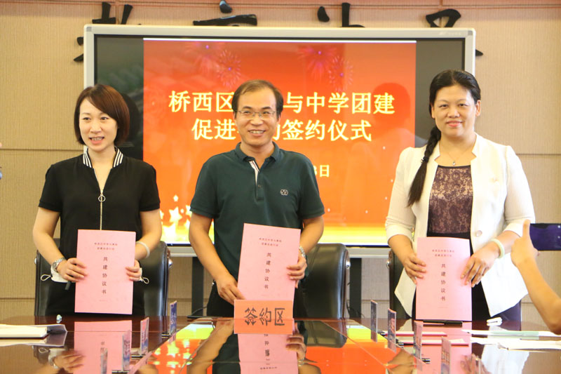 近日,由共青团桥西区委开展的高校与中学团建促进行动在石家庄市第41中学正式启动。团市委副书记曹晶,学少部部长耿云静,桥西区教育局党组书记黄振国、团区委书记张静、河北师范大学汇华学院党委副书记樊翠英及桥西区高校、区教育局、区属中学团委书记等出席了启动仪式。Beat365党委副书记张丽英代表Beat365与区教育局签订高校与中学团建促进行动协议,团委书记唐莉表态发言并为41中优秀团员带来精彩团课。