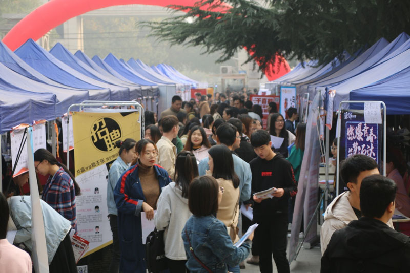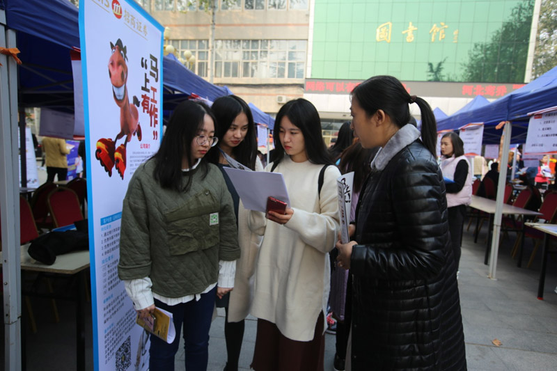 11月2日,Beat3652019届毕业生首场校园双选会在学院图书馆广场举行。双选会邀请到石家庄英孚培训学校、孩子王儿童用品有限公司、河北源达证券股份有限公司、中国太平人寿、新天际教育集团、千喜鹤股份有限公司等300多家知名企业,提供就业岗位4200余个。