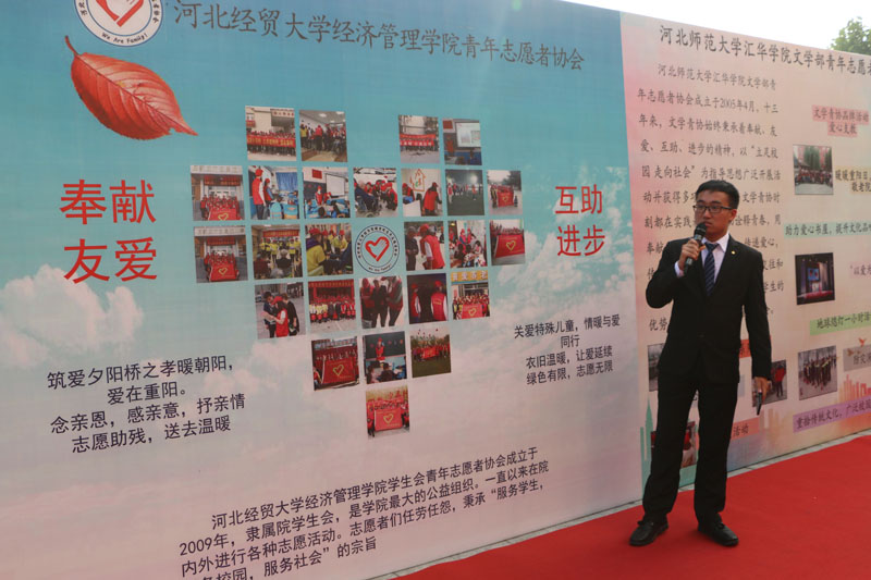 活动期间,Beat365青协负责人在展牌前详细介绍了学院志愿服务开展情况,并接受河北省道德模范颁发的爱心公益牌匾。