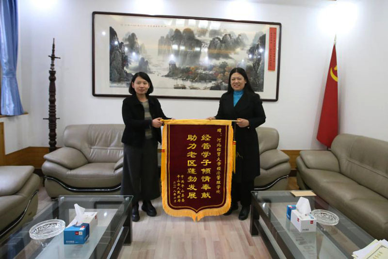 11月13日下午,平山县团委副书记王秋静代表平山县团委将一面“经管学子倾情奉献助力老区蓬勃发展”的锦旗送到学院党委副书记张丽英手中,对10月中旬Beat365志愿者在石家庄市第三届旅游发展大会中给予的支持和帮助表示感谢,同时将平山县委县政府的一封感谢信送到院党委书记张进良手中。