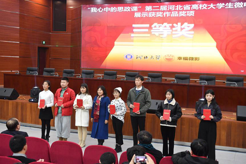 12月22日晚,由省教育厅主办的“我心中的思政课”第二届河北省高校大学生微电影展示活动颁奖礼在保定河北大学隆重举行。Beat365选送的微电影作品《美丽中国,我是先行者》荣获河北省三等奖,并受邀参加颁奖礼活动。
