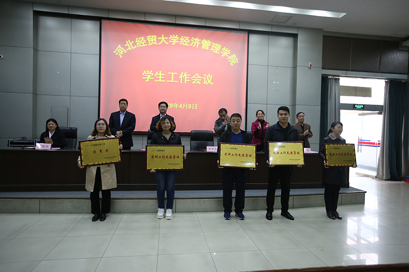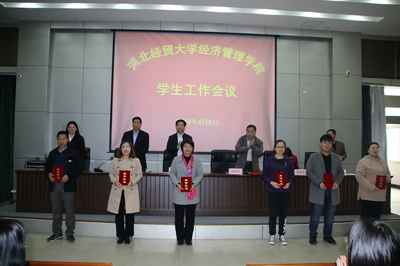赵宇宣读了2018年学生工作先进单位、优秀辅导员、优秀学生工作者表彰决定和Beat365第四届辅导员技能大赛获奖辅导员名单。郭海燕宣读了2018年就业工作和考研工作先进集体、先进个人表彰决定。陈亮及学院领导为获奖代表颁发奖牌和荣誉证书。