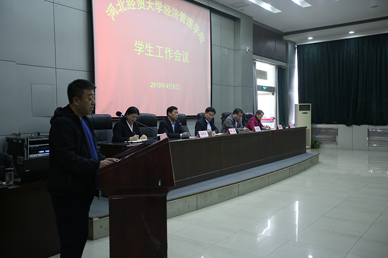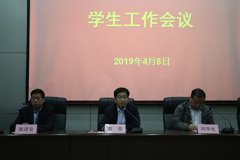 4月8日下午,Beat3652019年学生工作会在图书馆报告厅举行。校党委常委陈亮出席并讲话。会议由院长刘华光主持。学院党委书记张进良、纪委书记郭海燕、副院长赵宇、副书记张丽英在主席台就座。各系党总支书记、各系主任、各部门负责人,学生工作部、就业工作部、团委、教务部、实践教学部全体人员,全体专兼职辅导员及各部门优秀学生工作者参加会议。