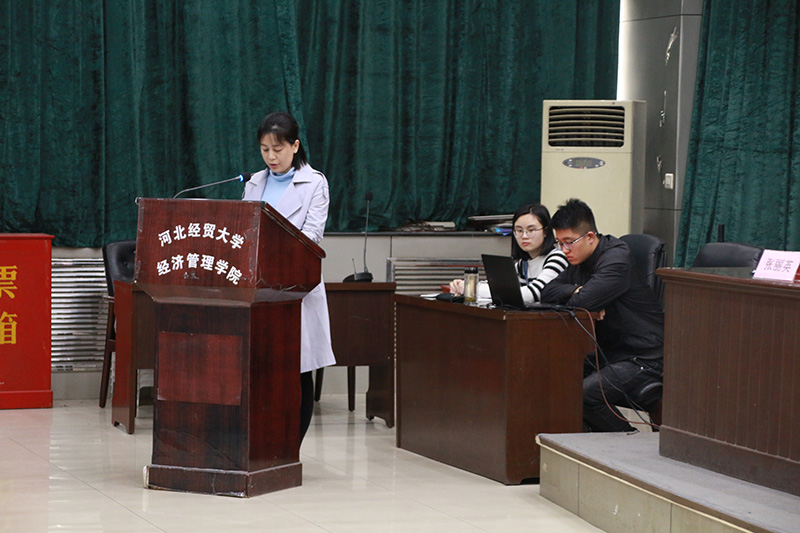 张丽英作了题为《立德树人有道 春风化雨无声》的学生工作报告。报告围绕立德树人、队伍建设、社会实践、服务学生、学风建设和校园安全稳定六方面,全面回顾了学院2018年学生工作情况,并对学院2019年学生工作思路进行阐述。
