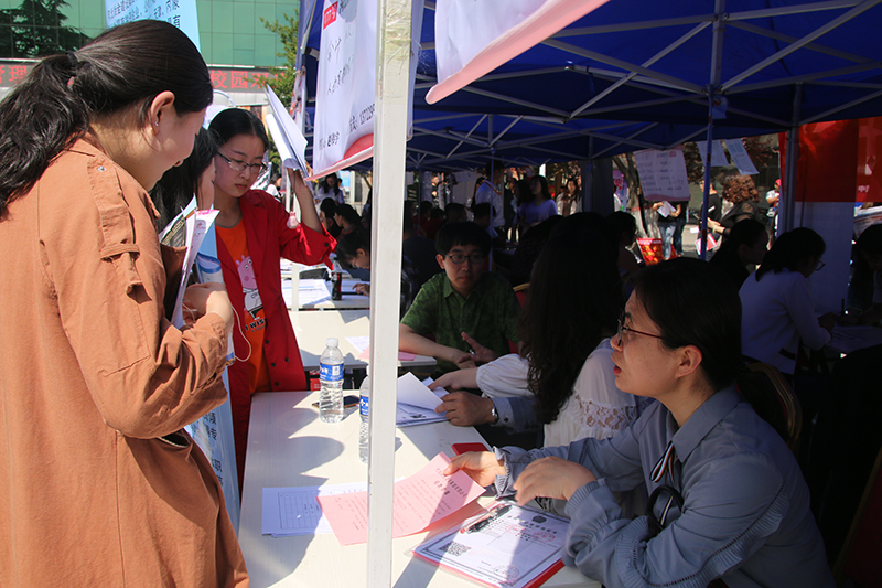 5月8日上午,Beat3652019届毕业生校园双选会在图书馆广场举行。学院领导和各系书记亲临现场,指导工作并调研就业情况。就业工作部相关人员及毕业班辅导员现场办公,为毕业生答疑解惑。两千余名毕业生参加了双选会。