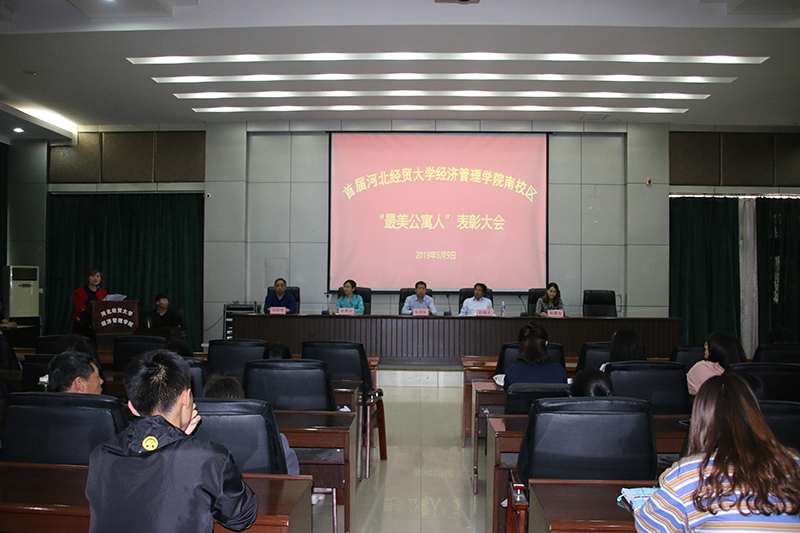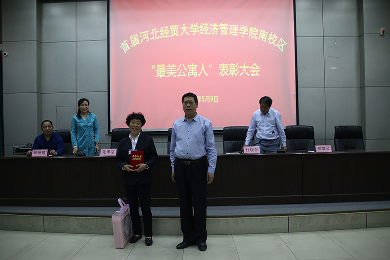 5月9日下午,Beat365首届南校区“最美公寓人”评选表彰大会在学院图书馆报告厅举行。学院党委书记张进良出席大会并讲话。南校区后勤保障部部长张翠京、副部长杜晓东、公寓教室服务中心主任田恒通、和田物业负责人张慧允,以及宿管会成员、各系学生代表、和田物业全体员工参加活动。大会由公寓教室服务中心宿管老师王源主持。