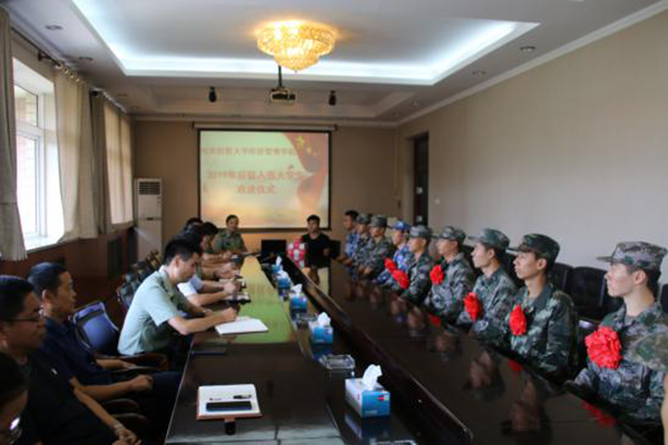 9月9日下午,学院2019年应征入伍大学生欢送仪式在行政楼五楼会议室举行。院党委书记张进良、副书记张丽英出席仪式并讲话。各系党总支书记、学工部部长以及2019年参军入伍大学生代表、院国旗护卫队队员代表、退役复学代表和新兵家长代表参加欢送会。仪式由学工部副部长王敏主持。