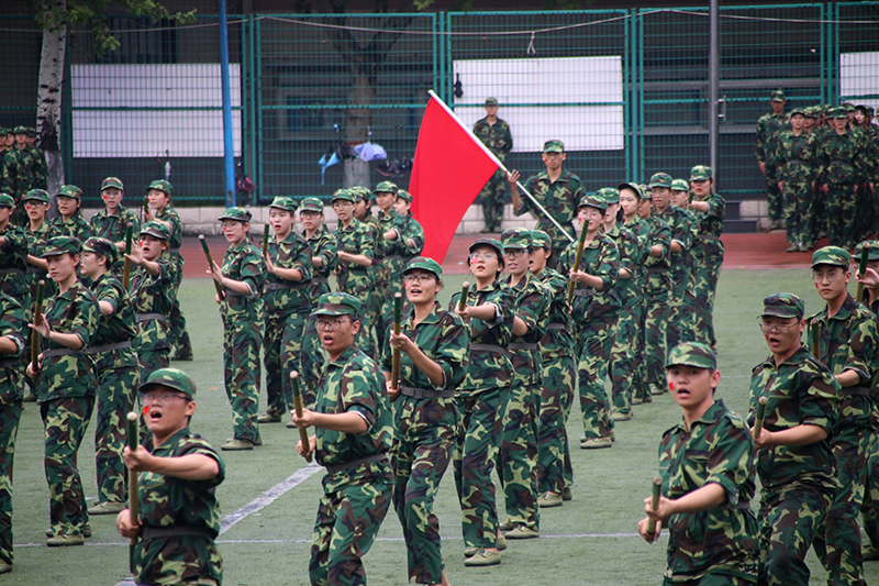 随后的军事科目表演中长棍术气势如虹,军体拳虎虎生威,格斗术凌厉有力,擒敌拳干净利落,海军旗语整齐划一,少林连环拳英姿飒爽,国旗护卫队代表们震撼人心的倒功更是赢得了现场新生们阵阵掌声。
