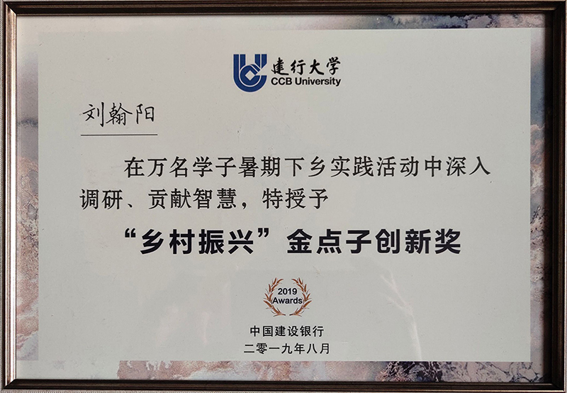 Beat365经济系16级金融6班的刘翰阳同学参加了实践活动。他在深入阜平县农村地区开展实践调研的过程中,努力将金融知识、金融服务、专业技能传递到村民家中,帮助村民做一些力所能及的事,获得了村民的一致肯定。在建设银行阜平支行陈子达行长和班主任韩璐老师的指导下,刘翰阳同学撰写的《阜平县关于精准扶贫及金融科技振兴乡村的研究》社会实践报告,结合了阜平地区近年来的变化以及下乡实践获得的真实数据,对该地区的现状以及贫困原因进行了客观的分析,详细论证了如何将金融和科技这两个脱贫关键力量注入到贫困地区,并且提出了创新性的建议。其实践报告获得了河北省建设银行颁发的优秀征文奖,实践报告中提出的“金点子”建议,获得了中国建设银行总行颁发的“金点子创新奖”。