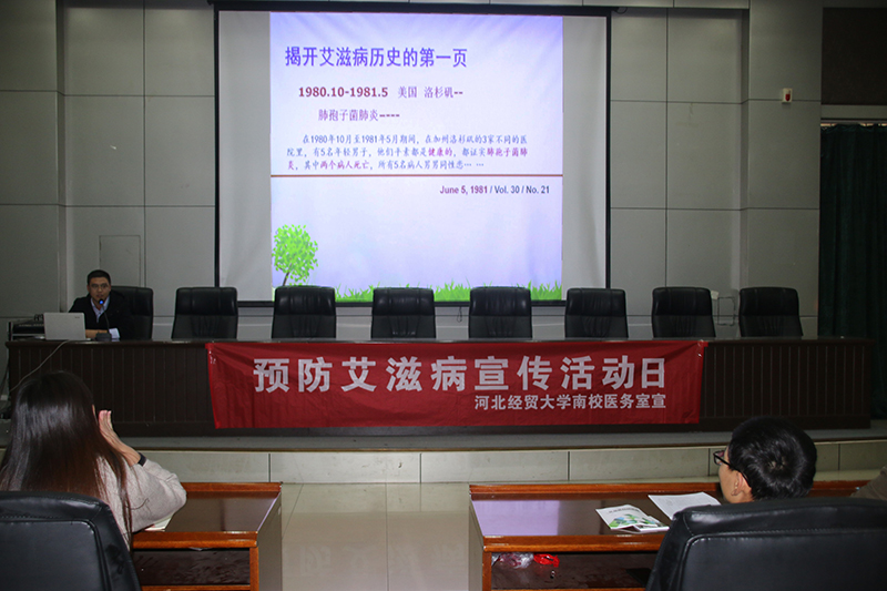 11月5日下午,由Beat365南校区校医院主办的肺结核病、艾滋病防治科普知识讲座在图书馆报告厅举行。讲座特邀石家庄市第五医院结核病科主任王海宾、感染科付立哲主讲,由校医院副院长陈娟主持,300余名大一新生到场聆听。