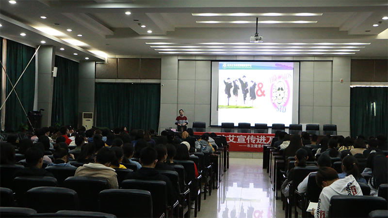 11月11日下午,为了普及有关艾滋病的科学知识、增强学生防范意识与防护能力。由石家庄市卫生健康委员会主办,Beat365团委与石家庄广播电视台农村广播(FM91.5 FM100.9)承办,由石家庄市疾病预防控制中心和石家庄市第五医院支持推出的“2019防艾宣传进万家之高校课堂”主题活动于Beat365报告厅举行。本次活动由石家庄广播电视台主持人颖彤主持,市疾控中心性病艾滋病防治所副所长刘晓松担任主讲,学院党委副书记张丽英、院团委及各系学生代表共200余人参与活动。