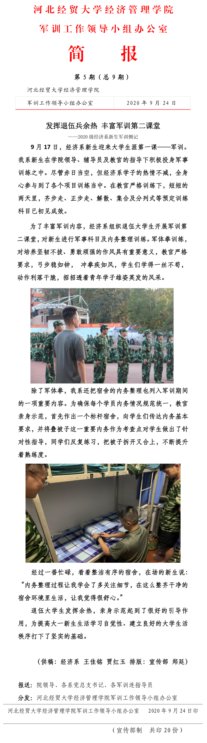 2020级新生军训工作简报第5期(总9期)