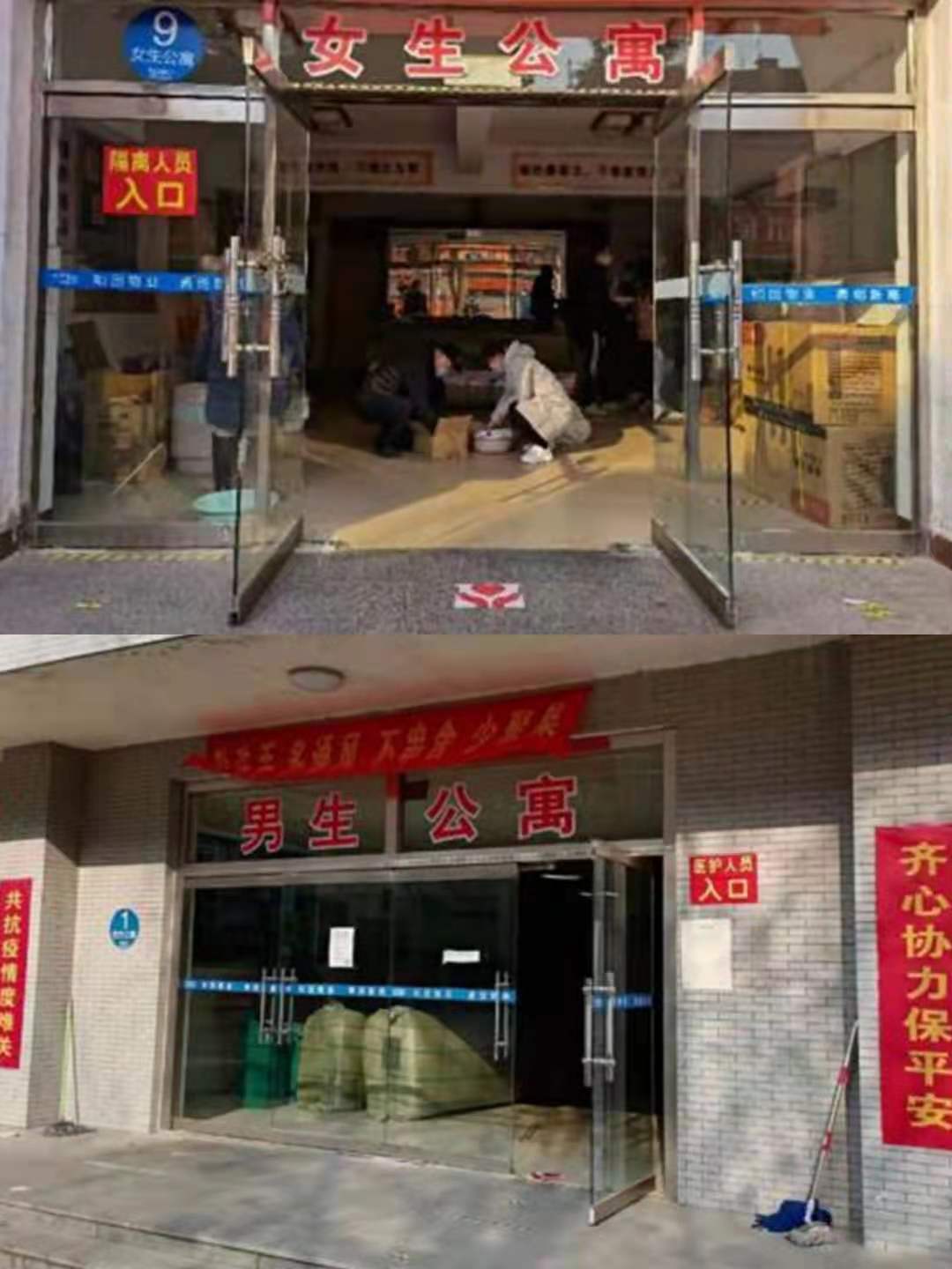 同时,为保障隔离人员、医护人员、管理人员和志愿者的安全住宿,公寓教室服务中心3名工作人员以及和田物业公司20余人连夜清理、腾空学生宿舍430间,进行了保洁消杀、门窗安全检查、逃生门锁更换、楼梯门及电井门锁加装、房间内物品摆放等工作。
