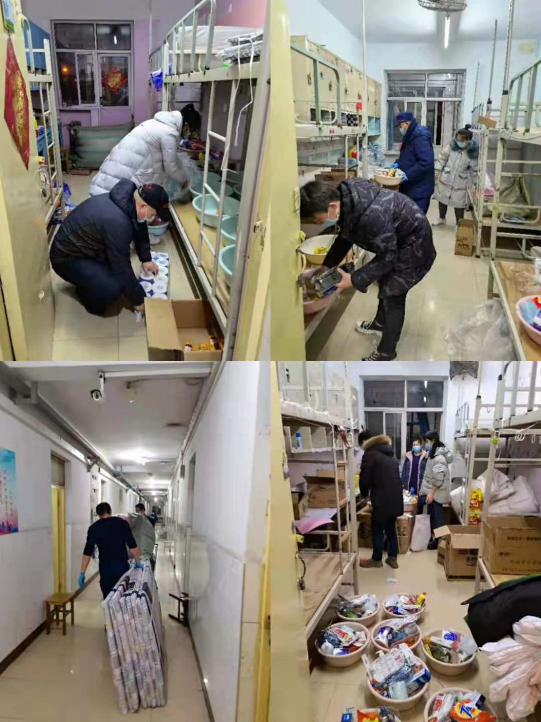 南后勤副部长王大权、公寓教室服务中心主任田恒通,职工卢福堂、樊学英,绿化环卫服务中心主任张建伟、动力保障服务中心主任赵永琴、电工班长张占军、水暖工班长陈晓亮组织施工人员,连夜奋战,完成了校园内隔离墙建设、征用区域围挡以及征用宿舍加装楼道隔断等任务,并对征用区域灯管、插座等用电设施设备进行了检修,在学院门口、通道紧急加装了照明设备;对公寓内洗手池、墩布池、暖气、卫生间上下水设备设施进行了检修、更换;对学院外围污水管道进行了疏通、消毒;调节供暖设备以保障隔离区房间温度;期间,还紧急抢修了开水房,以保障全天开水供应;此外,还联系热力公司提高供热温度,联系供电局保障不停电,紧急情况下配备发电机,联系环保局安装排污消杀设备。
