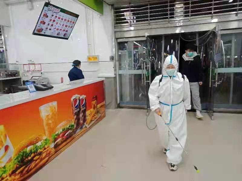 耿宏伟副主任带领西区校卫队员24小时值守,严格执行“六个一律”,对保障生活的车辆、物品进行严格的消毒作业;不间断地巡逻,及时处理突发事件。消杀工作关乎师生的健康,是重中之重。消杀工作人员严格执行制度,规范作业,守护校园一方平安对学校每一间教室、宿舍、卫生间、垃圾房等进行了全方位消杀,每天不少于两次,守护校园一方平安。食堂工作人员精心备餐,丰富花样品种,严把食品环境卫生关,保证让学生吃得安心,吃得舒服,吃得放心。保洁人员克服人员少,工作量大的困难,不计得失,确保校园环境卫生安全。