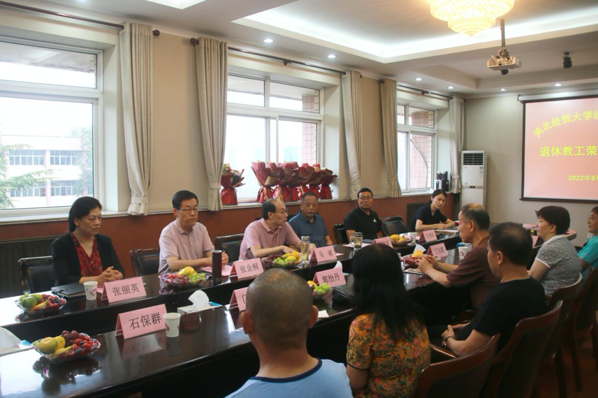 刘风长向荣休教职工表达衷心的谢意,他指出,经管学院在老一辈教职工的见证和推动下,创造了历史和辉煌,为建设经济强省、美丽河北输送了一大批创新创业人才。你们为学院留下了宝贵精神财富,退休后,学院也永远是大家的家,真心欢迎各位常回家看看,并祝愿所有荣休老师退休后老有所为、老有所乐、身体健康!