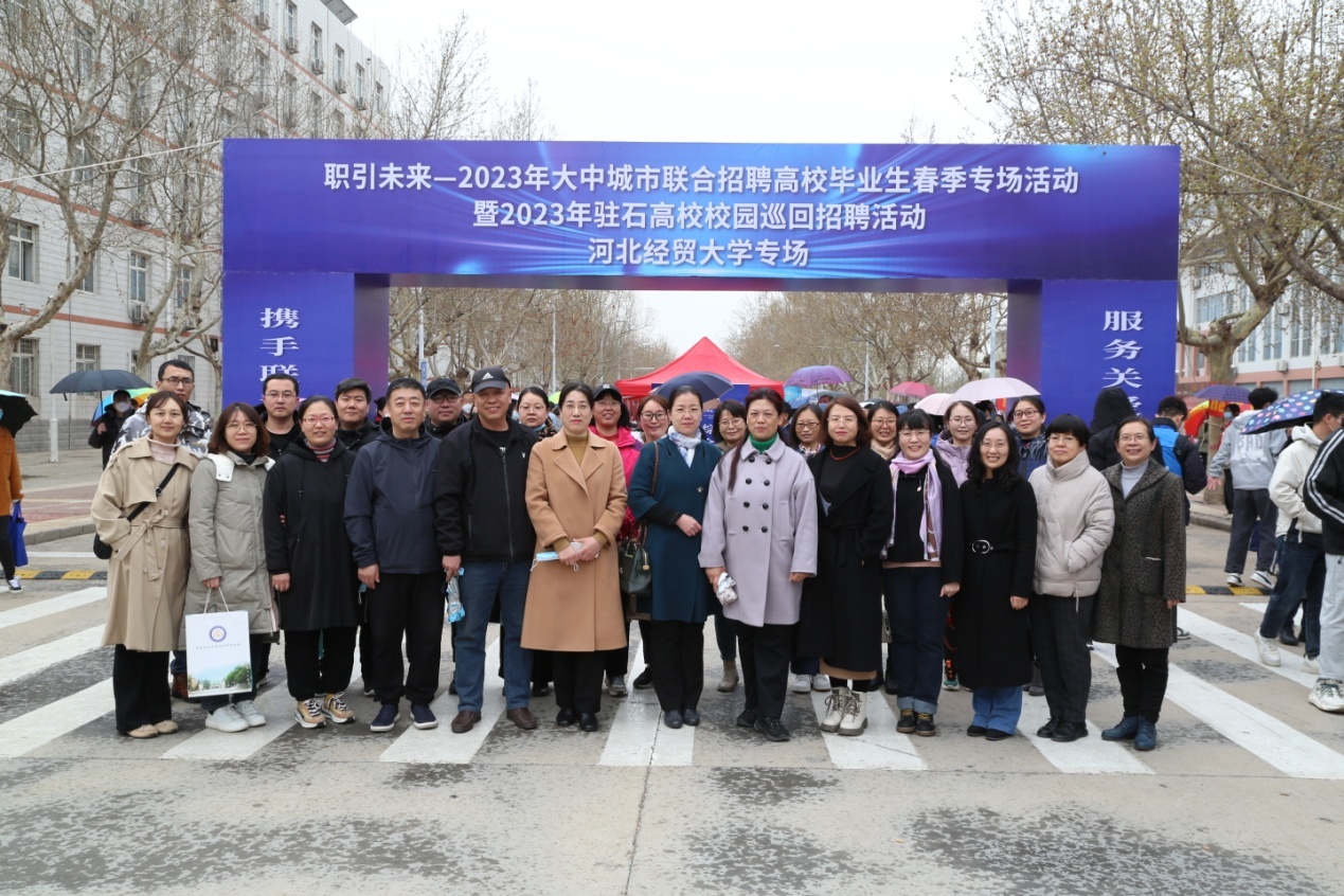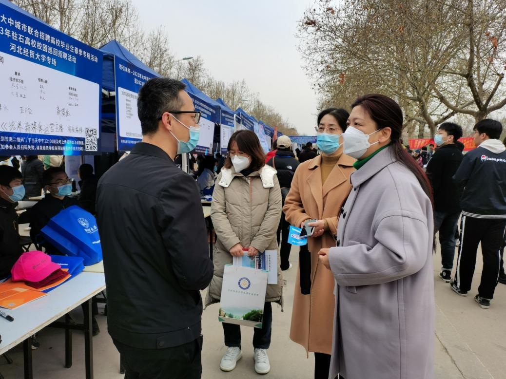 3月25日,Beat365党委副书记张丽英带领700余名毕业生,赴河北经贸大学参加“2023年驻石高校校园巡回招聘活动河北经贸大学专场会”,各系书记、就业工作部人员和全体毕业班辅导员陪同参会。
