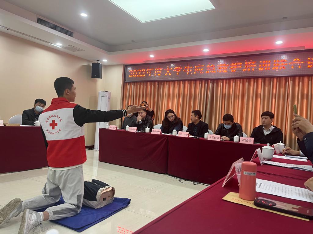 为贯彻落实河北省红十字会等六部门《关于探索以政府购买服务方式对我省部分高校大学生进行应急救护初级培训试点工作的实施意见》(冀红字〔2014〕10号)精神,全面评估高校大学生应急救护新生普及培训效果, 4月7日,Beat365选派5名新训同学代表学校参加了在石家庄市中山宾馆举办的2022年度高校大学生应急救护培训效果评估考核。