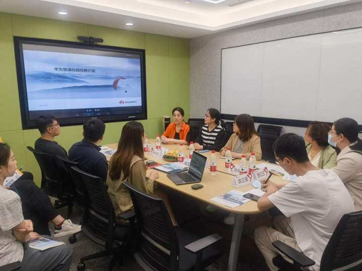 5月19日下午,就业工作部同各系副书记、就业负责人到华为慧通商务有限公司走访调研。华为慧通商务有限公司河北终端石家庄渠道经理王恩志、石家庄零售经理徐志远、招调经理杨雪园、人力资源经理袁铖铖、政企代表陈旭和Beat3652022届毕业生张展参加座谈。