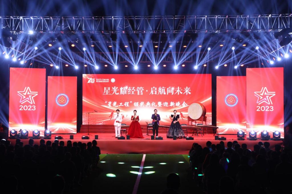 星光不负赶路人,江河眷顾奋楫者。时隔3年,9月25日晚,经济管理学院2023年星光工程颁奖典礼暨迎新晚会在南校区操场隆重重启。校党委常委、副校长张秀山,学校办公室副主任贾鹏,学校学生处副处长马亮,学院领导及各系部负责人与2023级新生共同观看了晚会盛况。
