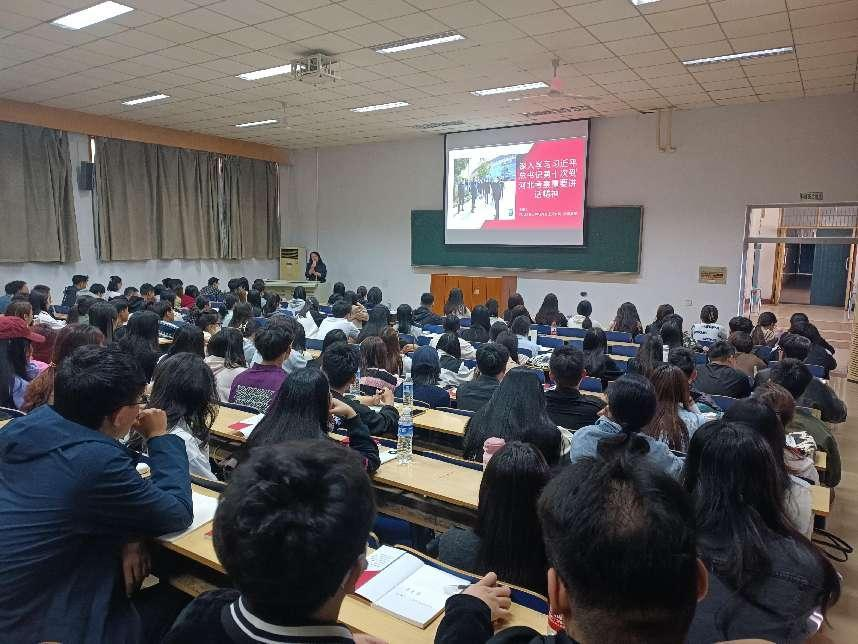 课上,李英教授以“深入学习习近平总书记第十次到河北考察重要讲话精神”为主题,以马克思主义基本原理、习近平新时代中国特色社会主义思想等科学理论为依据,对京津冀协同发展、雄安新区建设的重要意义、新时代我国自主创新发展进行了深入浅出的讲解,并用学生听得懂、学得会、用得上的知识为在场的同学呈现了一场专业知识理论与实践紧密契合的视听盛宴。