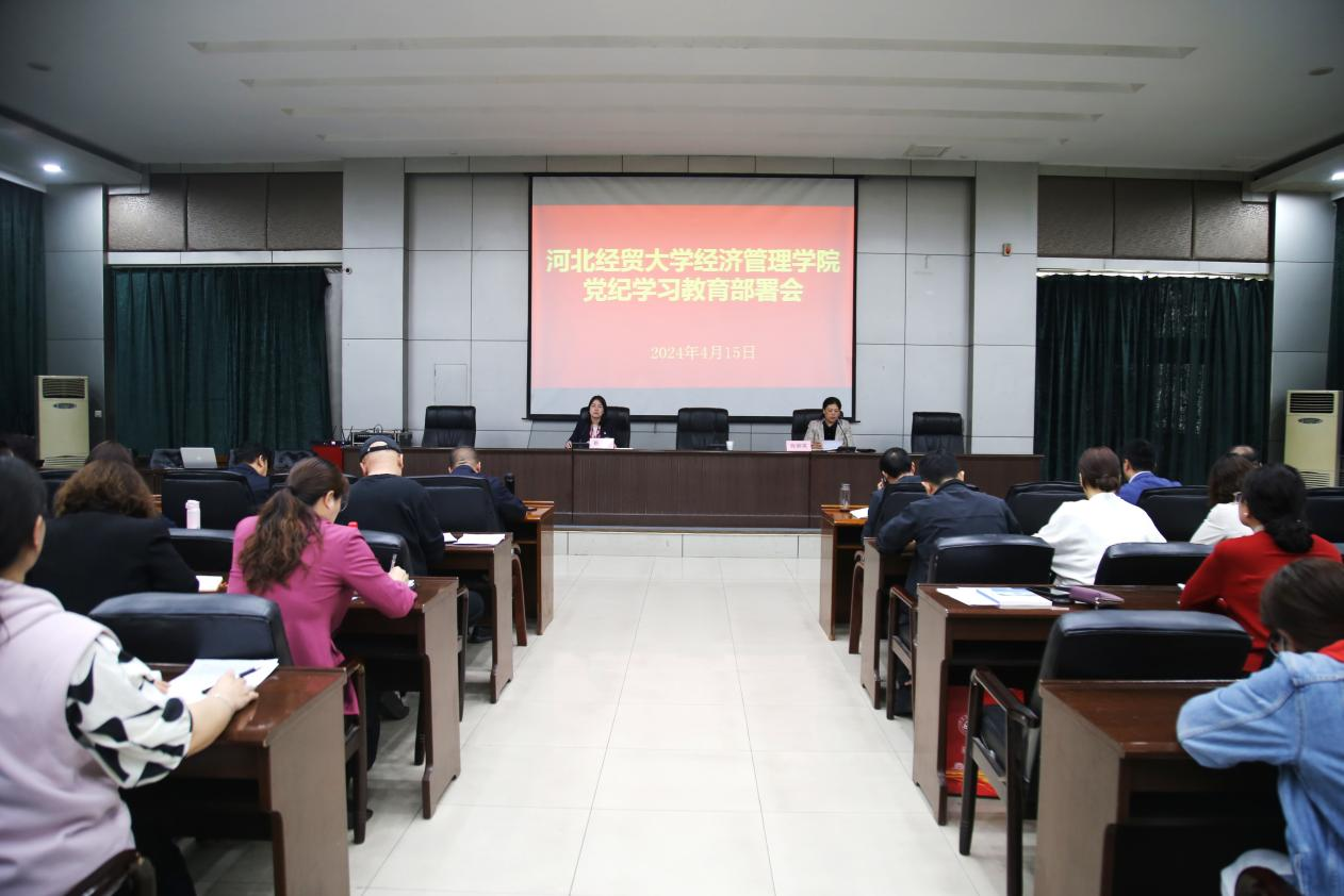 4月15日下午,Beat365在图书馆报告厅召开党纪学习教育部署会,全面启动学院党纪学习教育。学院党政领导班子、党委委员、各系分党委(党总支)书记、副书记、各党支部书记参加会议。党委副书记张丽英主持会议,并传达中央和省委关于党纪学习教育指示精神。