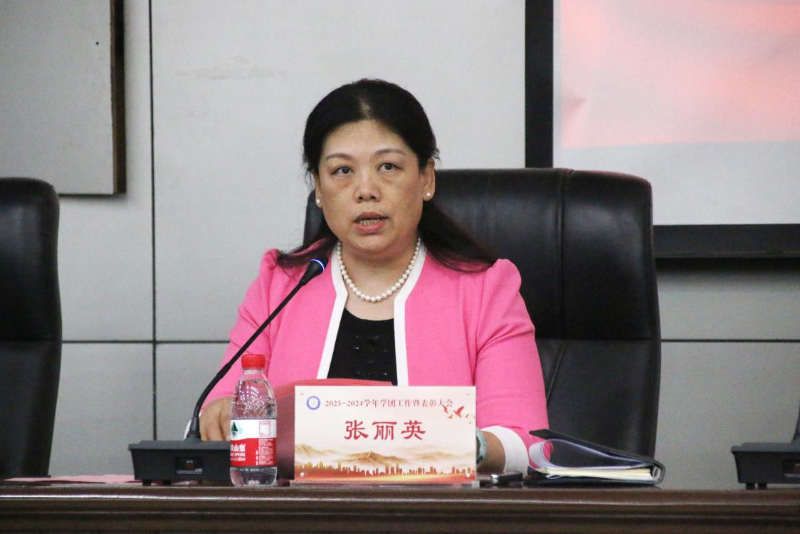 张丽英做了题为《肩负新使命 迈进新征程》的学团工作报告,报告中她回顾了2023年Beat365在学团工作方面取得的成绩。她指出,2023年,学院以习近平新时代中国特色社会主义思想和党的二十大精神为指导,班子成员互相配合,各系部团结协作,围绕培养应用型人才这一目标,学团工作在思政教育方面狠抓创新,在人才培养方面注重实效,在招生工作方面突出重点,在特色育人方面打造亮点,在综合育人方面强调质量,实现了立体化拓展学生工作的新局面。展望2024年,学院将在思政教育、建章立制、队伍建设、学风建设和校园文化五个着力点发力,努力推动学团工作再上新台阶。
