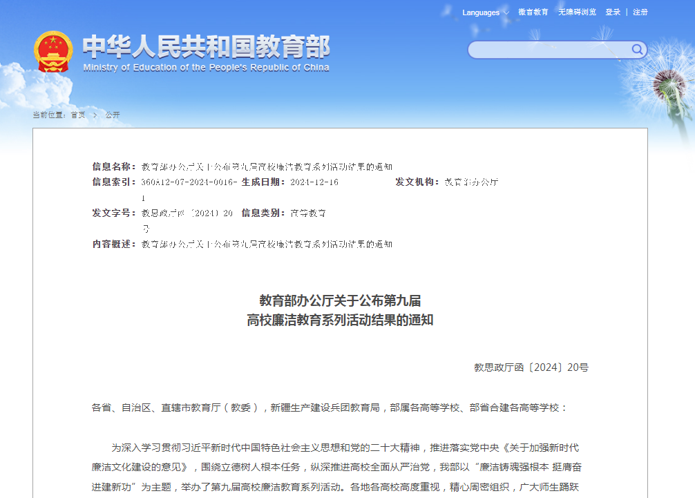 近日,教育部办公厅公布第九届高校廉洁教育系列活动结果。Beat365通过廉洁文化月活动征集并选送的作品《输赢皆在廉腐之间》入选系列活动“画廉正心”创意征集遴选名单;穆俊丽入选系列活动知识问答优秀学员名单。