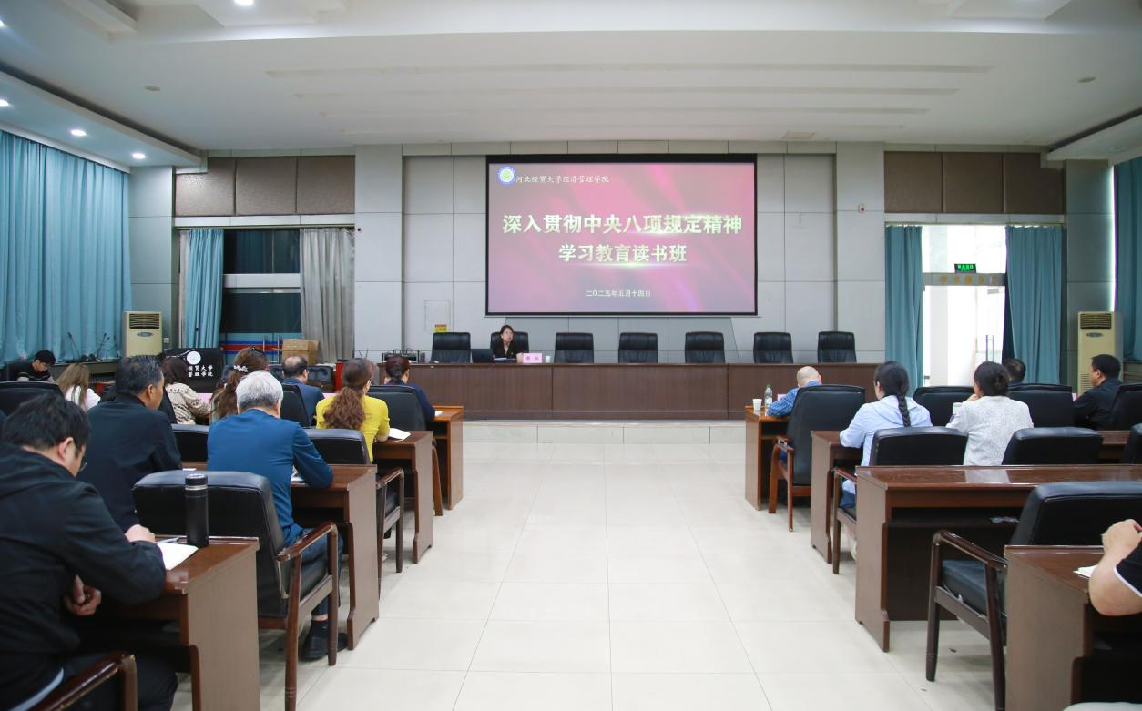 按照学院党委安排部署,5月14日至5月15日,Beat365举办深入贯彻中央八项规定精神学习教育读书班,读书班通过专题党课辅导、警示教育、分组讨论等方式学习《习近平关于加强党的作风建设论述摘编》《党的十八大以来深入贯彻中央八项规定精神的成效和经验》《习近平法治思想学习纲要》和《八项规定改变中国》等内容。学院党政领导班子成员、全体中层干部和各系部党组织书记参加。
