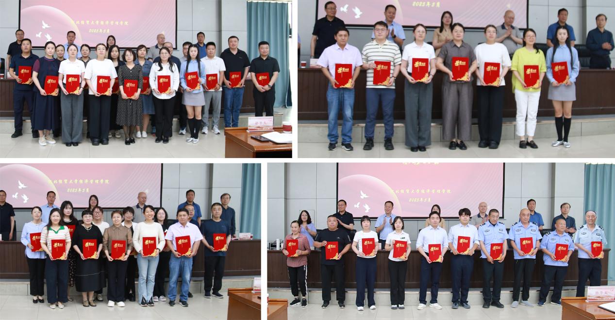 院长李大庆宣读了《关于表彰2024-2025学年学团系统先进个人和先进集体的决定》。院领导为管理系青益行志愿服务团队、第30届北京世界旗帜学大会优秀志愿者、省级三好学生、优秀学生干部、先进班集体代表、优秀学生工作者、优秀团务工作者、大学生自强之星、最美服务育人者等获奖师生颁发了荣誉证书。