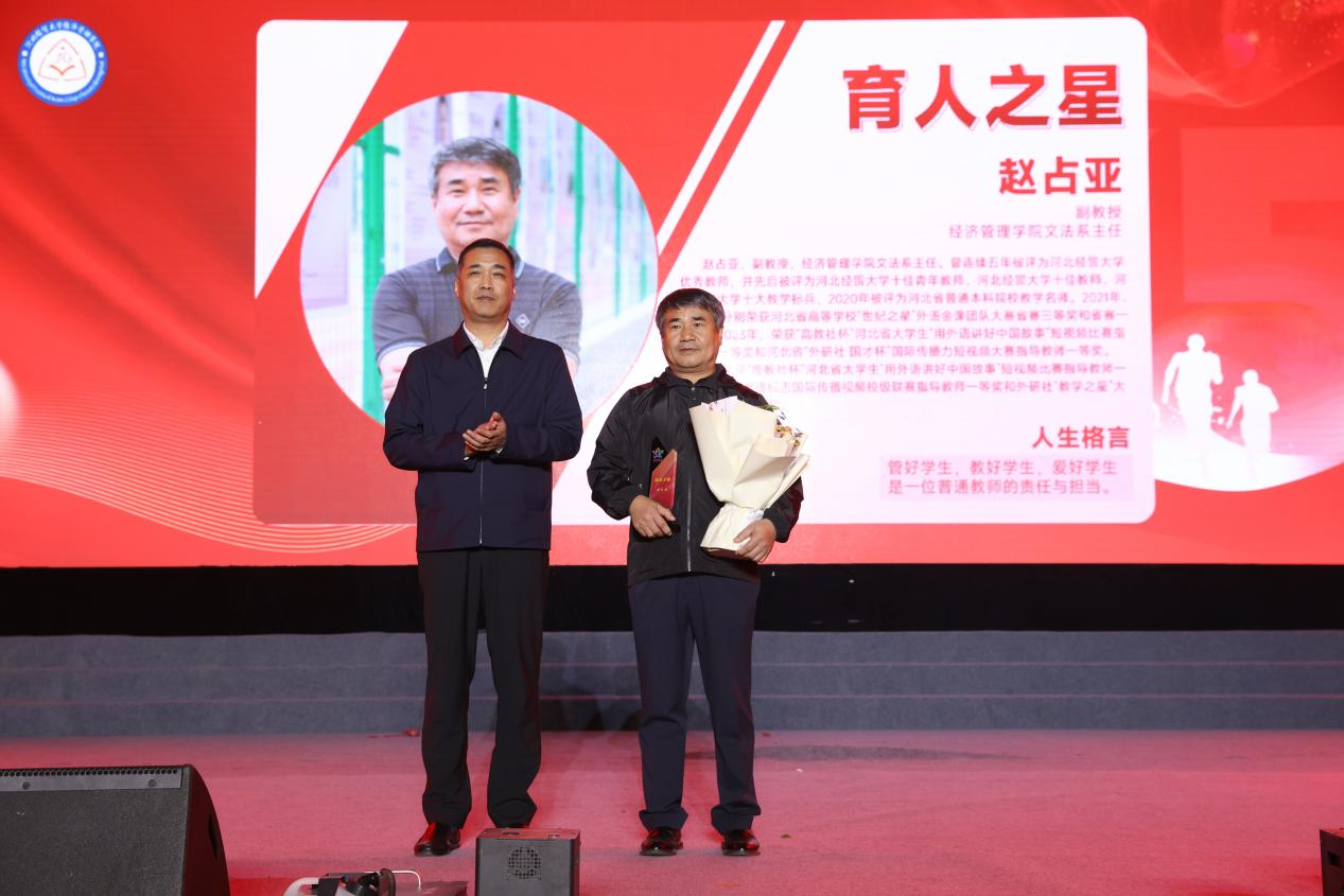 “感谢这个时代,让我走上了三尺讲台,无怨无悔;感谢经管这方蓝天,让我的青春在这里尽情挥洒;感谢经管这个平台,让我的生命在这里绽放光彩。”这是文法系主任赵占亚在2024年星光工程“育人之星”颁奖会上的心声,也是他三十余年教学生涯的真实写照。